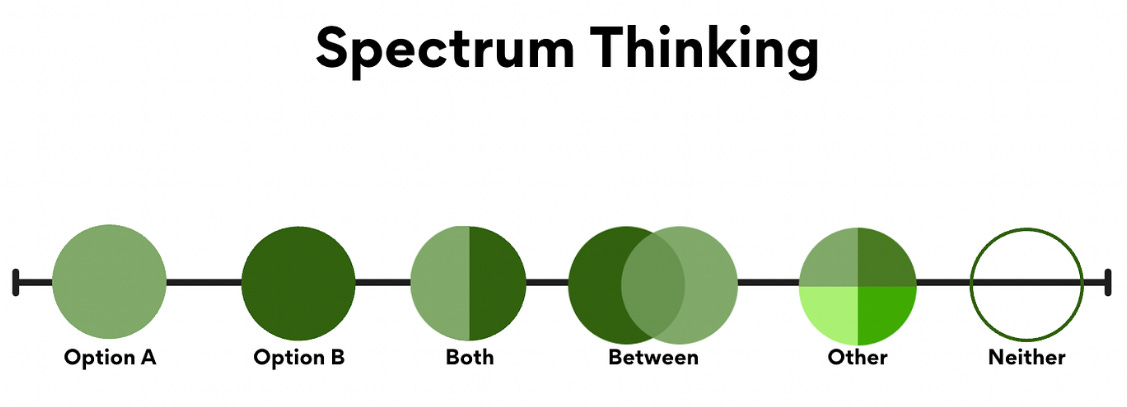 Again, I point to the spectrum vs binary. With a spectrum I can see the humanity of an undocumented immigrant. I can understand that they all have different stories about how and why they came here. I can see there’s a mix of escaping danger and destitution in nations that were historically victimized by the US. There’s a rich tapestry of motives, personalities, families, and human experiences. I don’t feel an impulse to artificially divide people into “us” and “them”.
